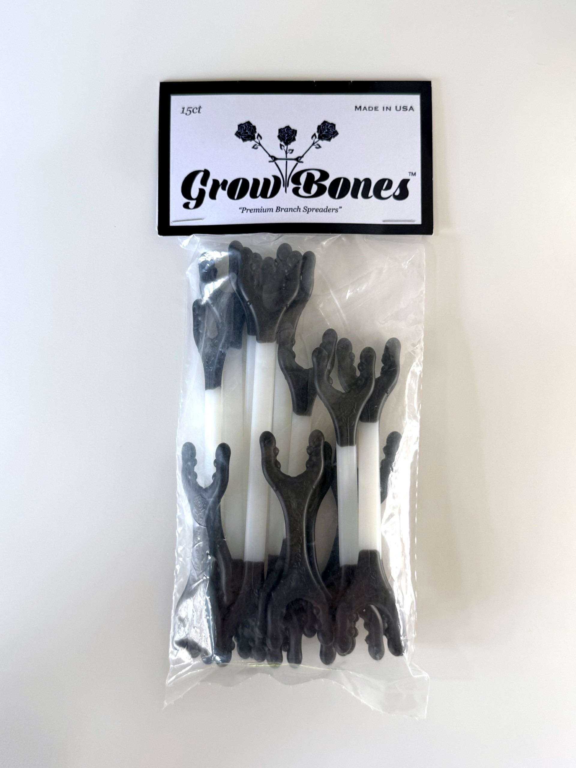 For the serious grower who demands control and performance, Grow Bones are a precision-designed plastic branch spreader that gently trains your plant's branches outwards, allowing for increased airflow and light penetration. Built tough and designed for repeat use, they're the go-to tool for growers who want precision control over plant structure and spacing.
